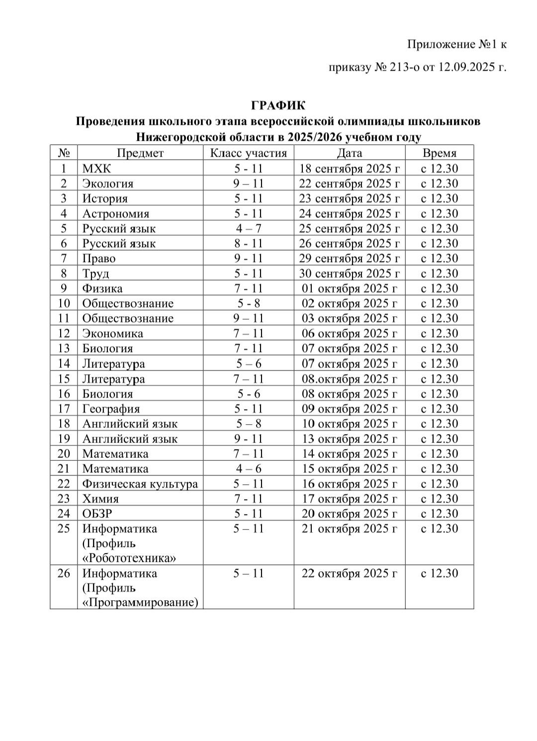 ОЛИМПИАДЫ 2025 – 2026 УЧЕБНЫЙ ГОД